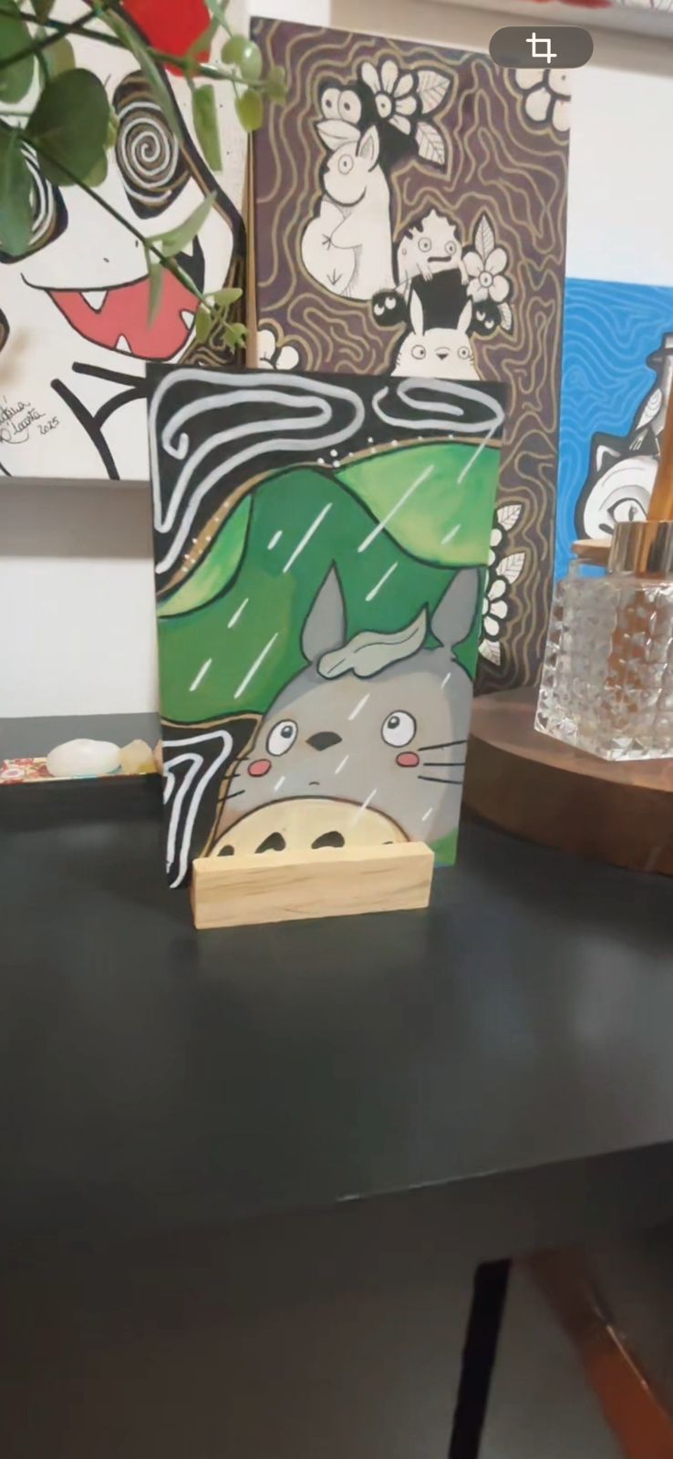 Tela 10x15 cm com suporte em madeira para apoiar onde quiser.